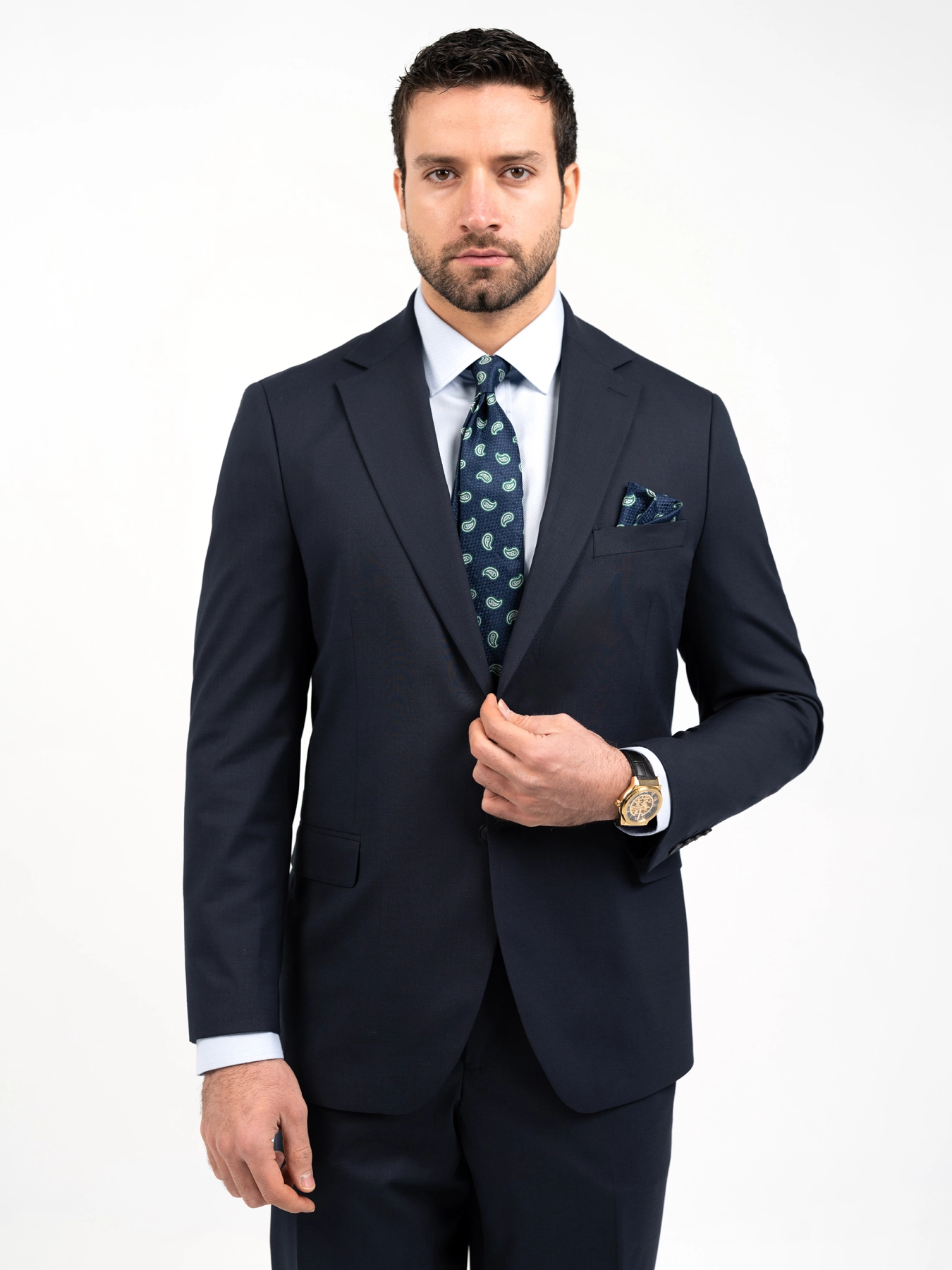 - دستمال جیبی (Pocket Square): انتخاب رنگی نزدیک به کروات یا کمی متضاد برای جذابیت بیشتر.