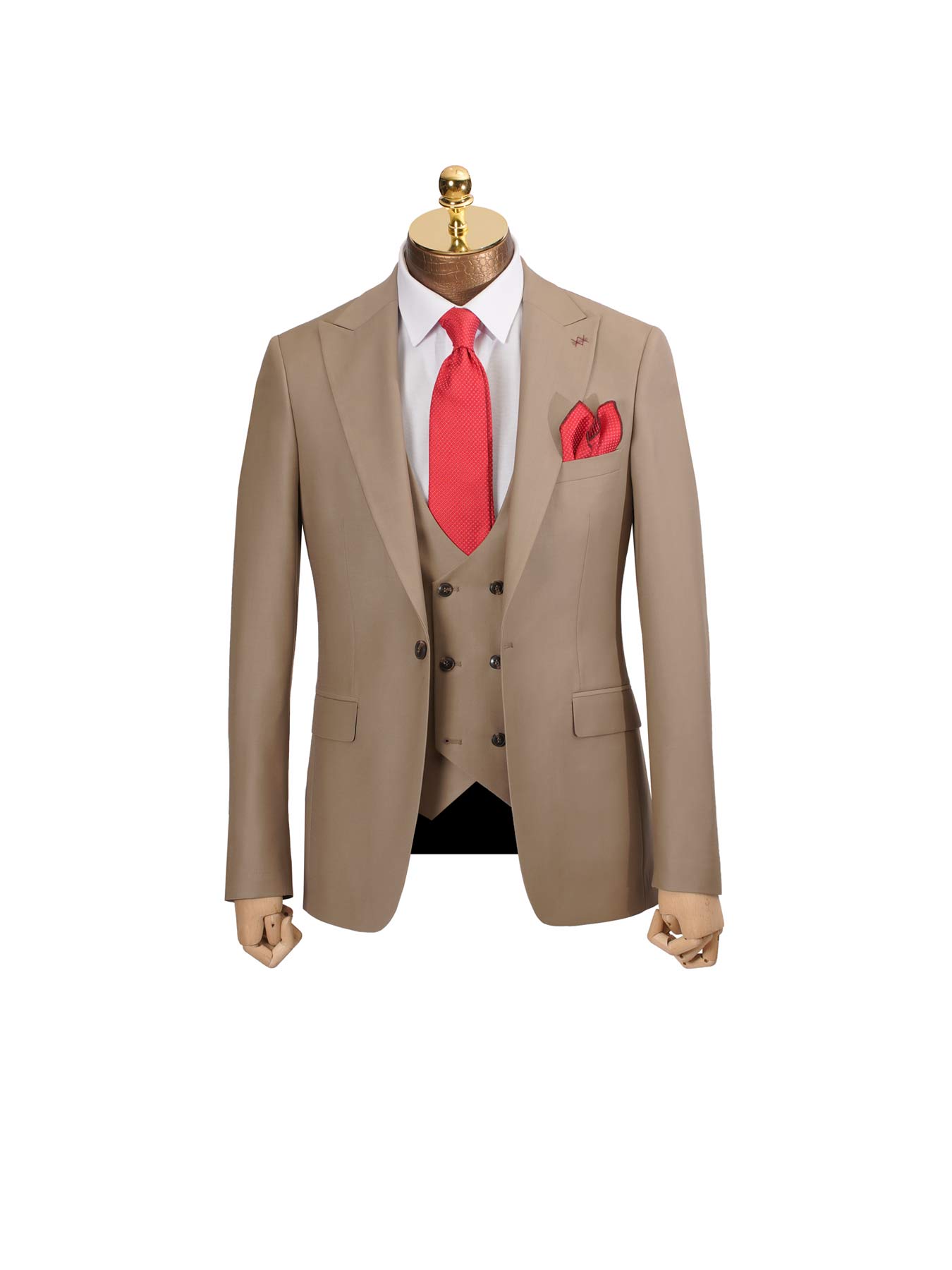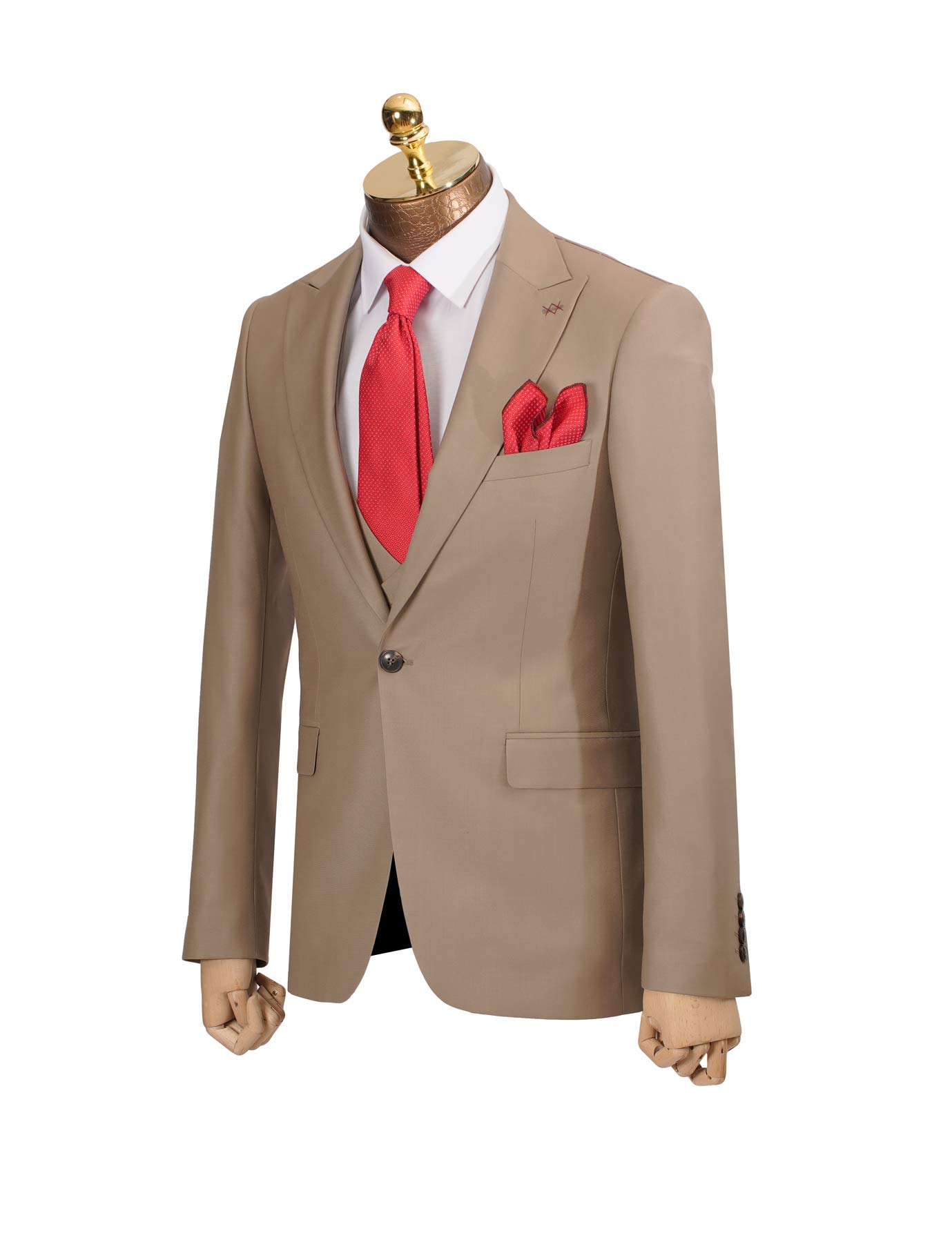 کت و شلوار تکدکمه کرم سوپر کش طرح ترک درجه 1 بدون جلیقه مدل B40