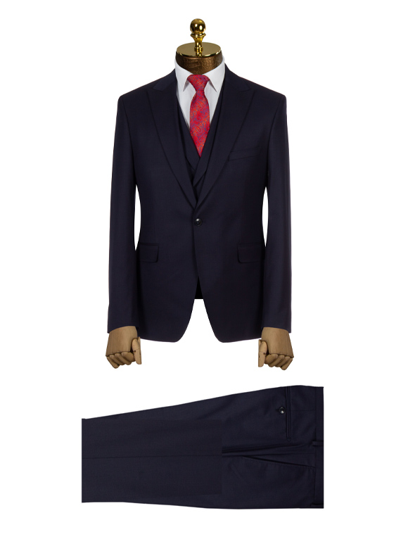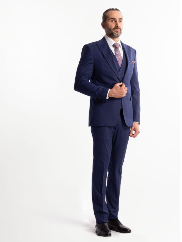 کت و شلوار سورمه ای تکدکمه از پارچه فاستونی درجه یک، شیک و دوخت صنعتی دقیق، انتخابی بینقص برای مراسمهای رسمی و خاصترین روز زندگی شما.