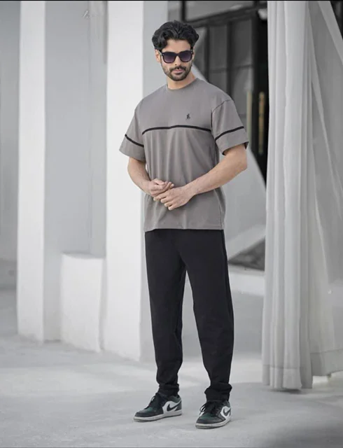 ست تیشرت آستین کوتاه یقه گرد با شلوار بلند مشکی و کرم خاکی مردانه طرح Polo تک رنگ خاص، جنس نخی باکیفیت، راحت و مناسب برای استفاده روزانه؛ قابل ارائه در سایزبندی متنوع