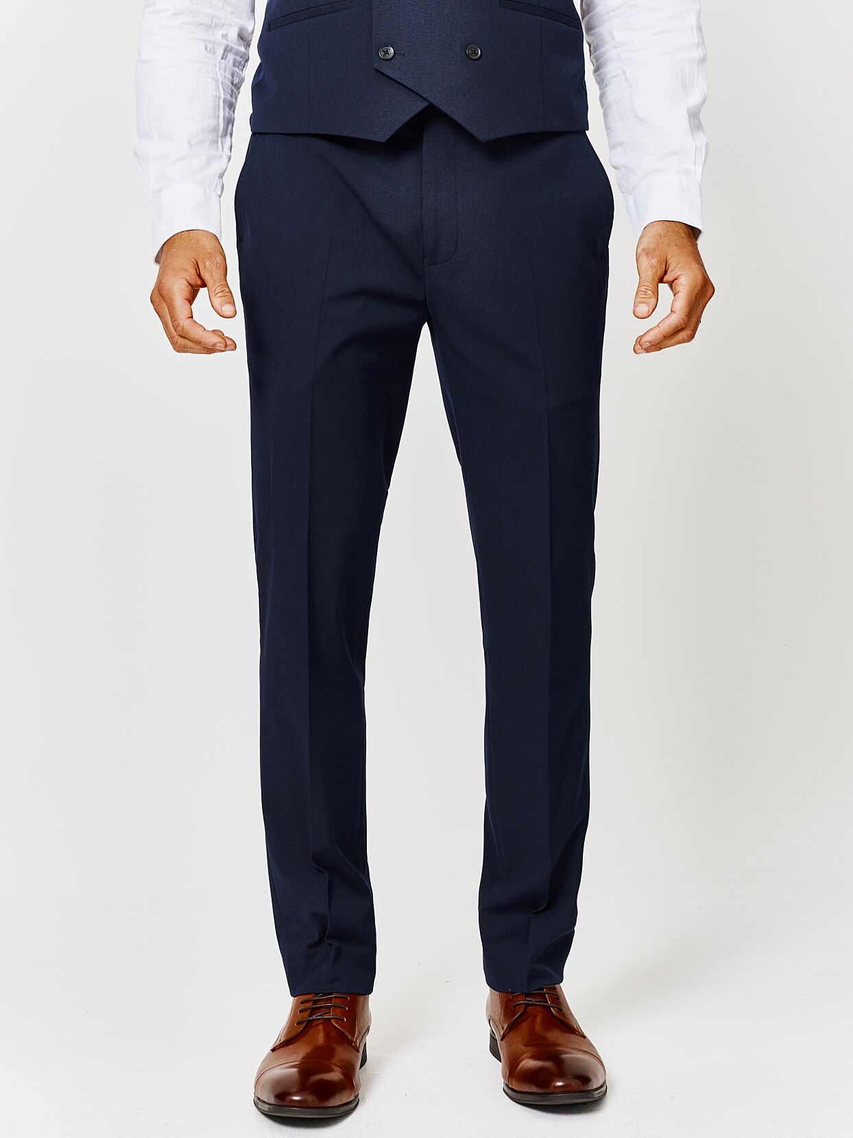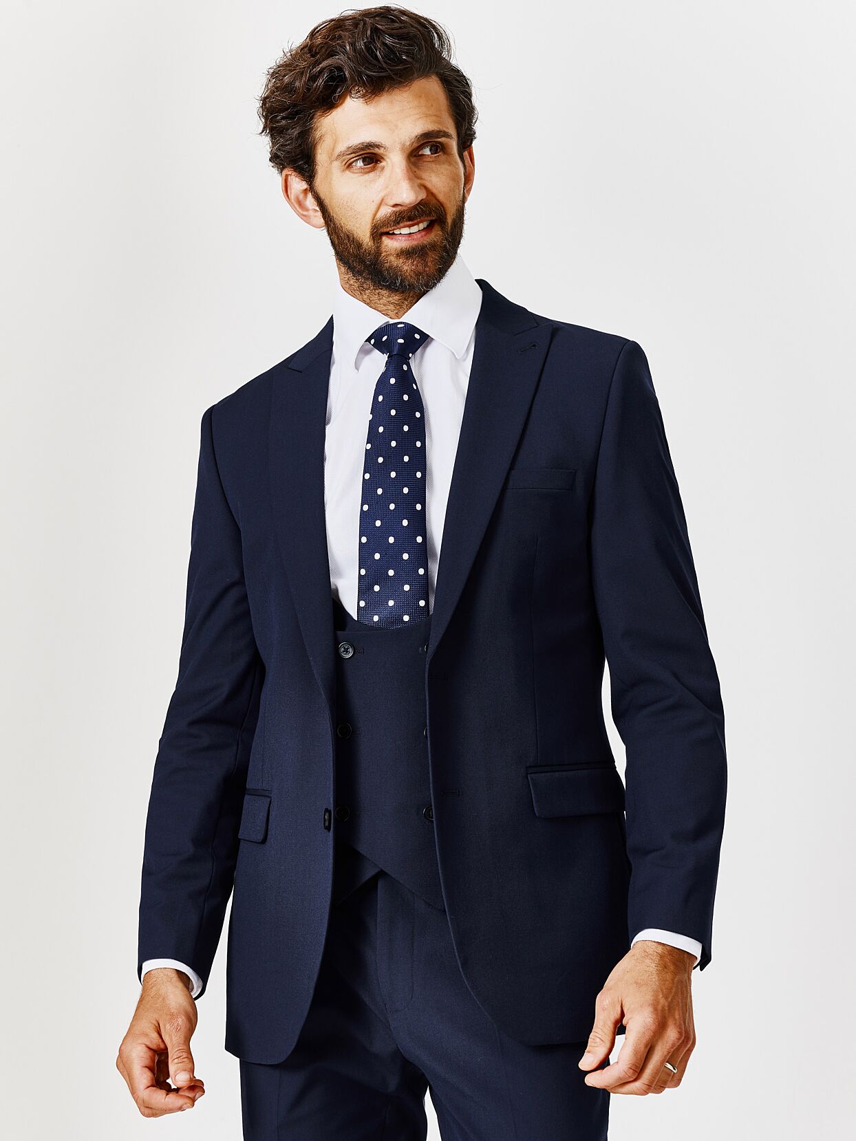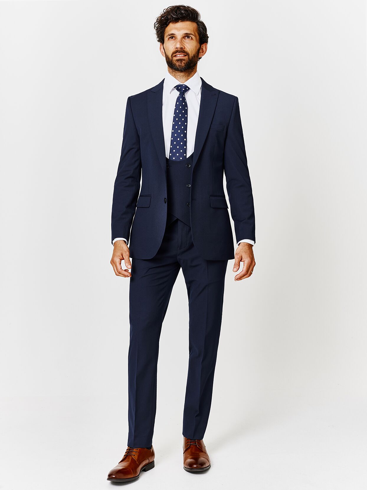 کت و شلوار مردانه دو دکمه سورمه ای فاستونی ۱۰٪ با یقه بلیزر و دوخت صنعتی مدل J66