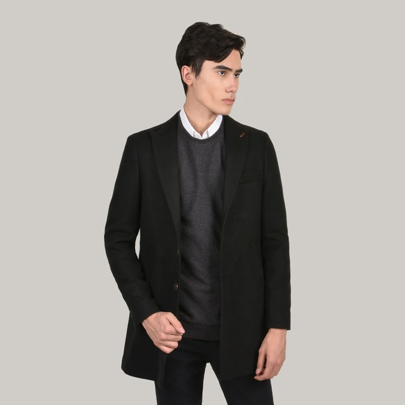- پالتوی فوتر مشکی یقه بلیزر مردانه با دوخت صنعتی دقیق، مناسب آقایان خوشپوش در روزهای سرد