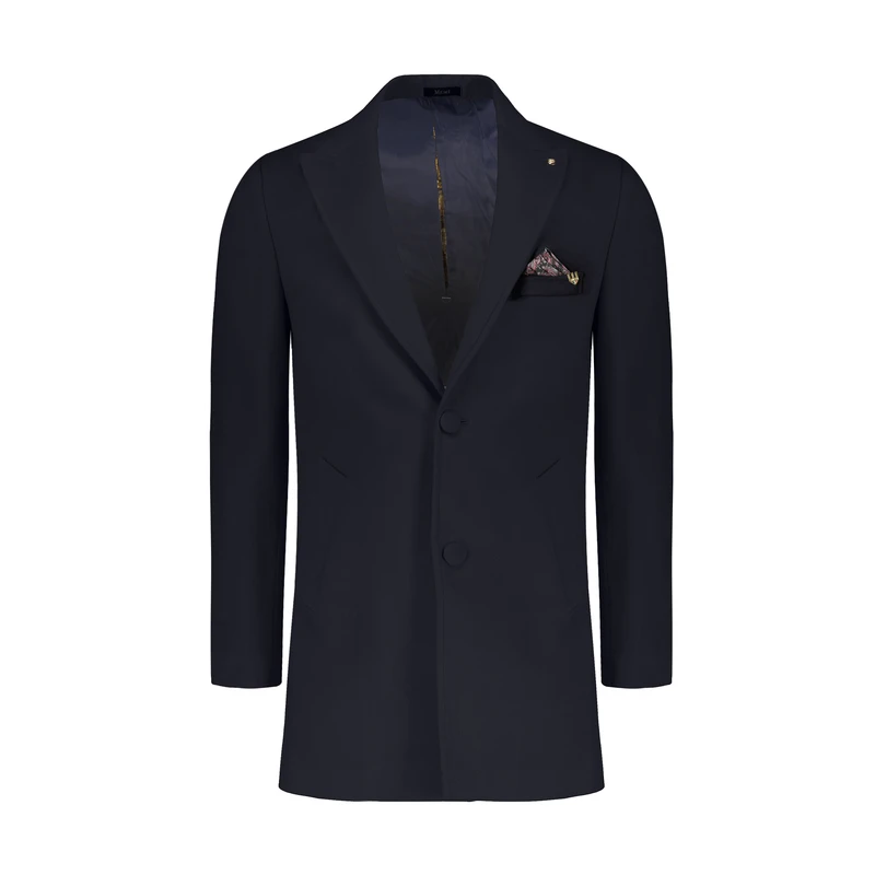 - پالتوی فوتر سورمه ای یقه بلیزر مردانه با دوخت صنعتی دقیق، مناسب آقایان خوشپوش در روزهای سرد