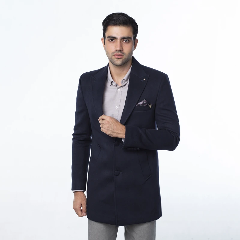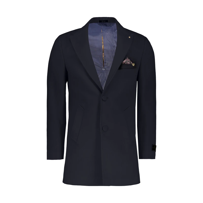 - پالتوی فوتر سورمه ای یقه بلیزر مردانه با دوخت صنعتی دقیق، مناسب آقایان خوشپوش در روزهای سرد