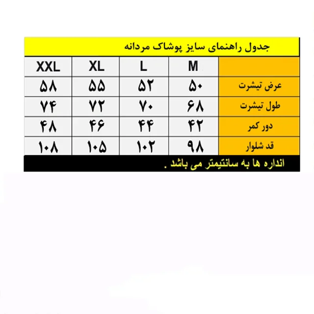طبق جدول در تصاویر اندازه گیری نمایید و سایز مورد نظر را انتخاب نمایید