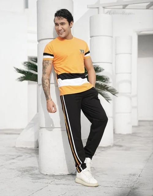 ست تیشرت آستین کوتاه نارنجی یقه گرد با شلوار بلند مردانه طرح Y-3 تک رنگ جذاب دارد که ظاهر شیک و مردانهای به شما میبخشد. این ست از جنس نخ مرغوب تهیه شده که تنخور راحت و خنکی دارد و برای فصلهای گرم و پاییزی سال بسیار مناسب است. کیفیت بالای دوخت و طراحی آن باعث دوام و ماندگاری بیشتر لباس شده و میتواند انتخابی عالی برای استفاده روزمره، دورهمیهای دوستانه یا فعالیتهای ورزشی سبک باشد. همچنین این محصول در سایزبندی کامل عرضه میشود تا همه آقایان بتوانند از آن استفاده کنند. طرح و مدل الگو برداری شدهاز برندهای آلمانی می باشد.